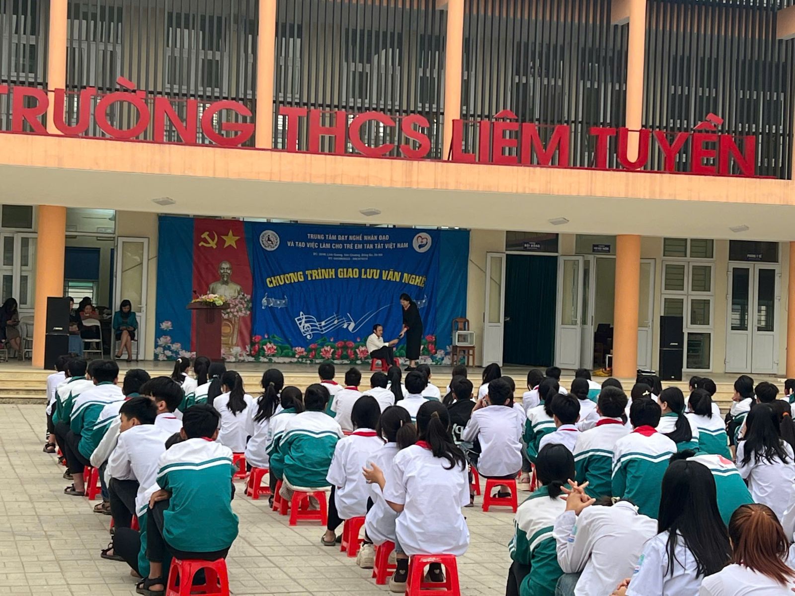 TRƯỜNG THCS LIÊM TUYỀN PHỐI HỢP VỚI TRUNG TÂM DẠY NGHỀ NHÂN ĐẠO TỔ CHỨC GIAO LƯU VĂN NGHỆ VỚI TRẺ KHUYẾT TẬT