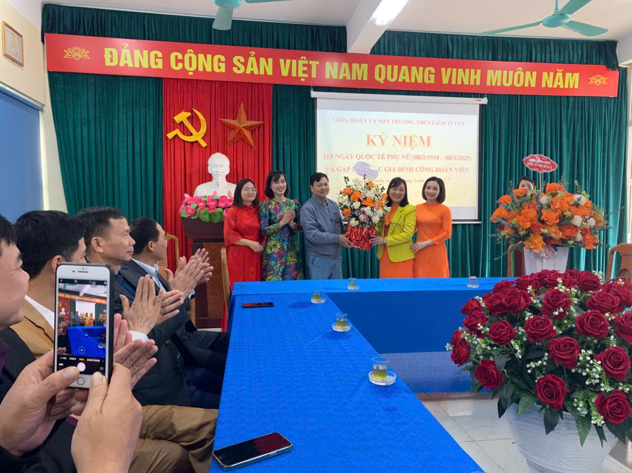 Được sự nhất trí của cấp ủy chi bộ và lãnh đạo nhà trường, hôm nay công đoàn trường THCS Liêm Tuyền long trọng tổ chức kỉ niệm 115 ngày Quốc tế phụ nữ (08/03/1910 – 08/03/2025) và gặp mặt gia đình các đồng chí công đoàn viên trong nhà trường .